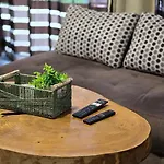 Goście mogą korzystać z żelazka z deską do prasowania i klimatyzacji i telewizji satelitarnej. We wnętrzu znajdują się sofa, a także kominek. W łazience znajduje się prysznic. W łazience znajdują się również suszarka do włosów.